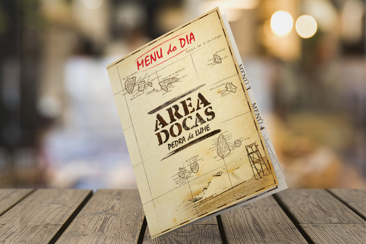 Il menu ristorante del locale Area Docas rispecchia l’identità e la specificità della struttura, oltre che la zona geografica nella quale è collocata, ovvero un ex deposito portuale delle storiche saline dell’isola di Sal; in passato una delle principali strutture commerciali attorno alle quali ruotava l’economia dell’intera isola. Per il design del menu ristorante è stata utilizzata un’antica mappa di Capo Verde, digitalizzata e rielaborata con immagini di vecchie stampe, per realizzare un layout grafico di forte impatto, dal sapore autentico; un menu che oltre che proporre i piatti racconta una storia. Un progetto di graphic design, che ha generato quello che probabilmente è uno dei migliori menu per ristoranti mai realizzati da Studio7B; tant’è che la grafica del menu ristorante di Area Docas è stata così apprezzata da essere ripresa in tutti gli altri supporti dell’immagine coordinata.