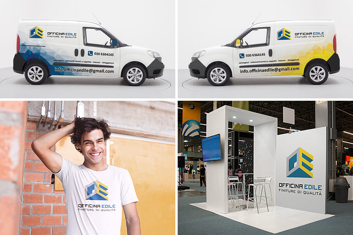 Il reparto grafico dello studio di comunicazione Studio7B di Brescia, dopo aver ultimato la realizzazone del logo, ha assistito il cliente anche nella creazione della Corporate Image, ovvero tutto ciò che ruota attorno al marchio aziendale, la cosiddetta Immagine Coordinata. Per Officina Edile, si sono quindi pensate e realizzate, grafiche per i supporti cartacei basilari, come biglietti da visita, carte intestate e brochures; così come anche per i veicoli aziendali ed i vari supporti utilizzati dall’azienda.